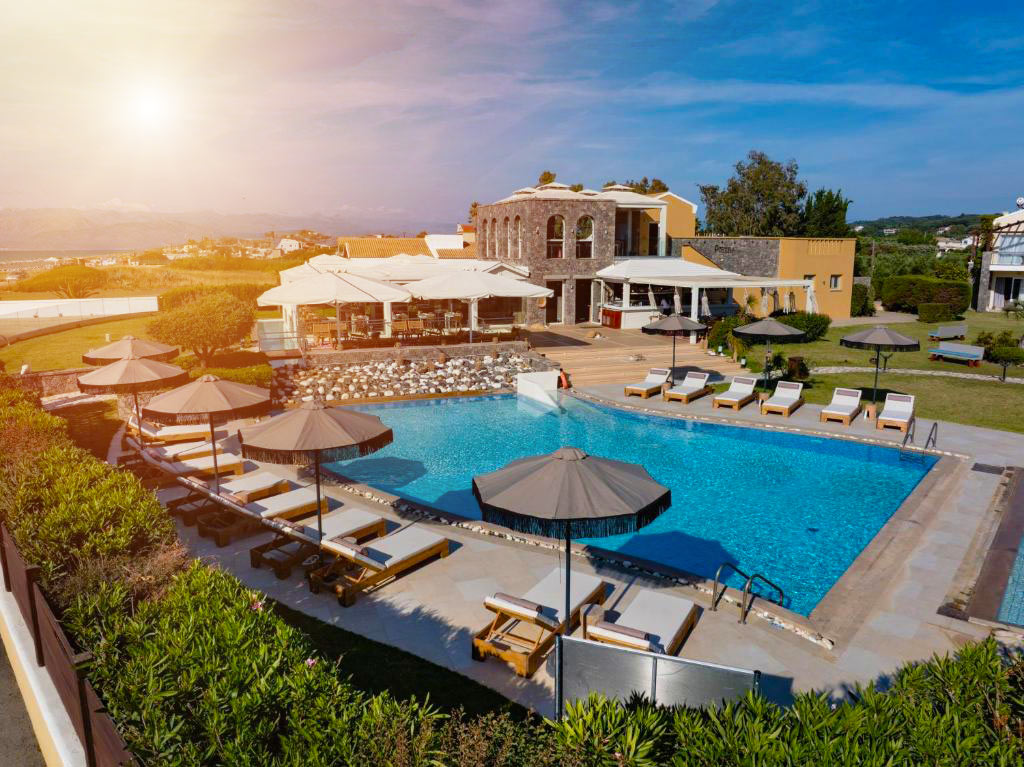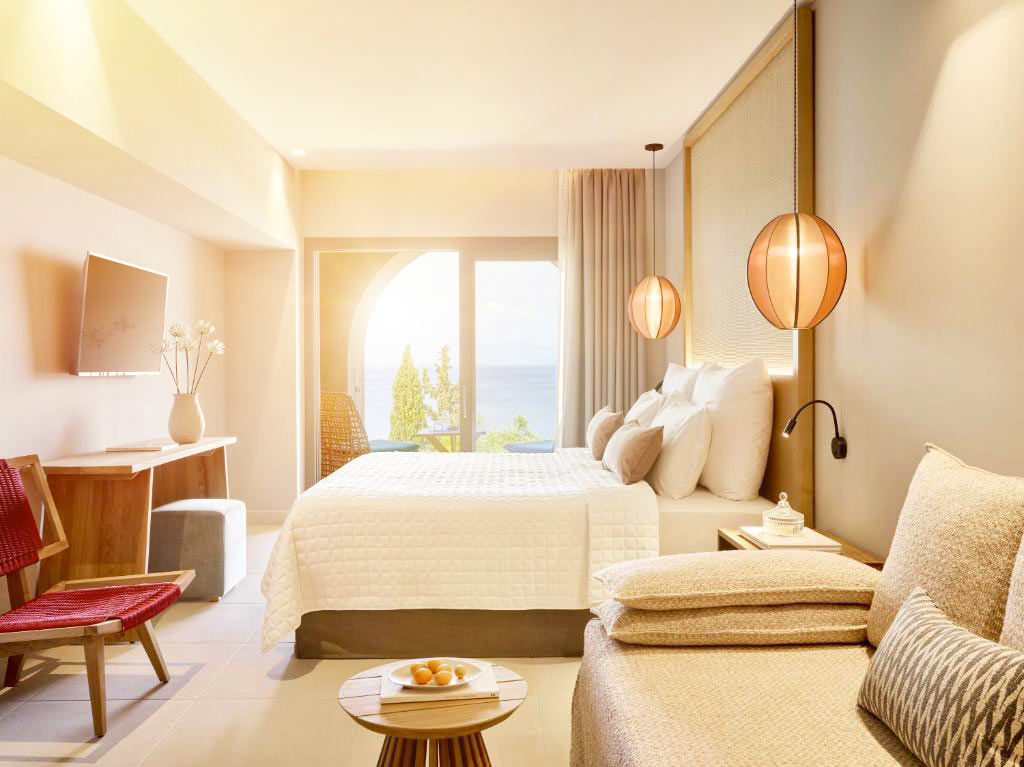 - Aeolos Beach Resort: Set on a hillside south of Corfu Town with a private beach. Modern rooms and bungalows from 250€, with all-inclusive options available. Strong points: multiple pools, beautiful sea views, very good variety and quality of food.