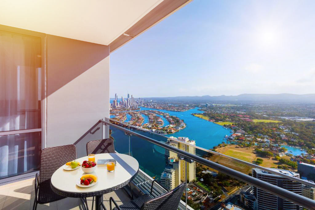 - Meriton Suites Broadbeach: Situado en Broadbeach. Suites modernas y muy espaciosas de uno, dos o tres dormitorios con balcón desde 200 €. Puntos fuertes: piscinas cubiertas y al aire libre, cocina completa y lavandería, cerca de todo. Deberías tener en cuenta este lugar si viajas a Gold Coast en familia.
