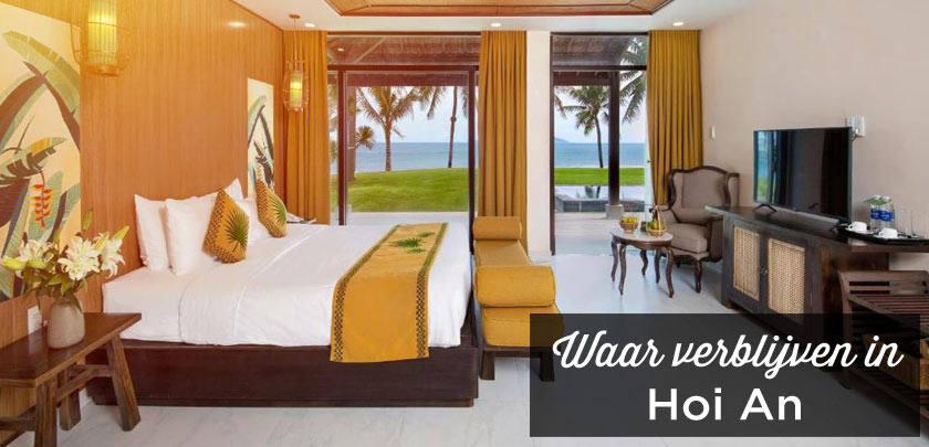 - Hoi An Beach Resort: perfect gelegen tussen de De Vong-rivier en het Cua Dai-strand. Ruime kamers met balkon vanaf €130, inclusief ontbijt. Pluspunten: 2 buitenzwembaden, fantastisch uitzicht op de rivier en de zee, gratis pendeldienst naar de oude stad. Mijn aanbeveling voor een resortverblijf met een uniek decor.