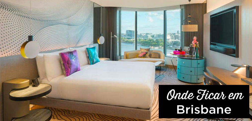 • W Brisbane: Um luxuoso hotel de 5 estrelas com vistas deslumbrantes sobre o rio Brisbane. Quartos arrojados e contemporâneos a partir de 350€. Pontos fortes: incrível deck de piscina em estilo resort com jacuzzi, spa fantástico, ambiente vibrante e serviço excecional. Um hotel fantástico para uma estadia luxuosa e divertida no CBD!