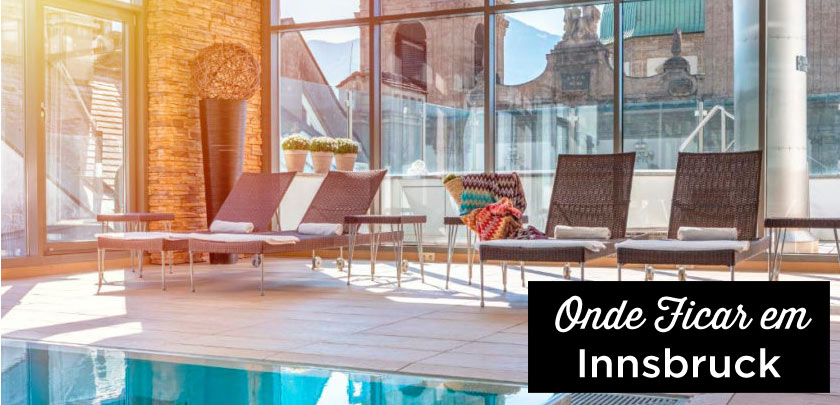 - Hotel Innsbruck: Mesmo junto ao rio Inn, a 2 minutos a pé da Cidade Velha. Quartos duplos elegantes a partir de 180€. Pontos fortes: duas fantásticas áreas de spa, uma com piscina interior e outra com vista panorâmica para a montanha a partir da sauna e do jacuzzi. A minha melhor escolha para uma primeira estadia em Innsbruck!