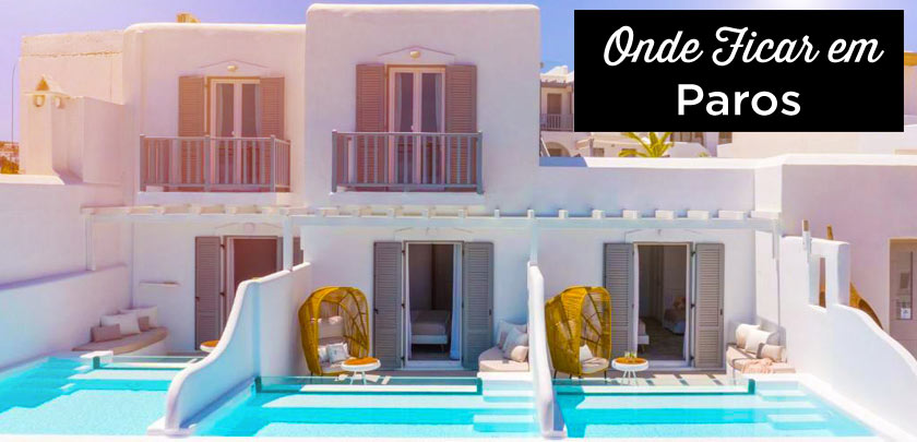 - Poseidon of Paros Hotel & Spa: Este hotel de 5 estrelas está localizado na Golden Beach. Oferece suítes bem iluminadas com terraço e algumas com piscina privativa a partir de 300€. Pontos fortes: localização privilegiada à beira-mar, duas piscinas, ótimas instalações para esportes aquáticos.